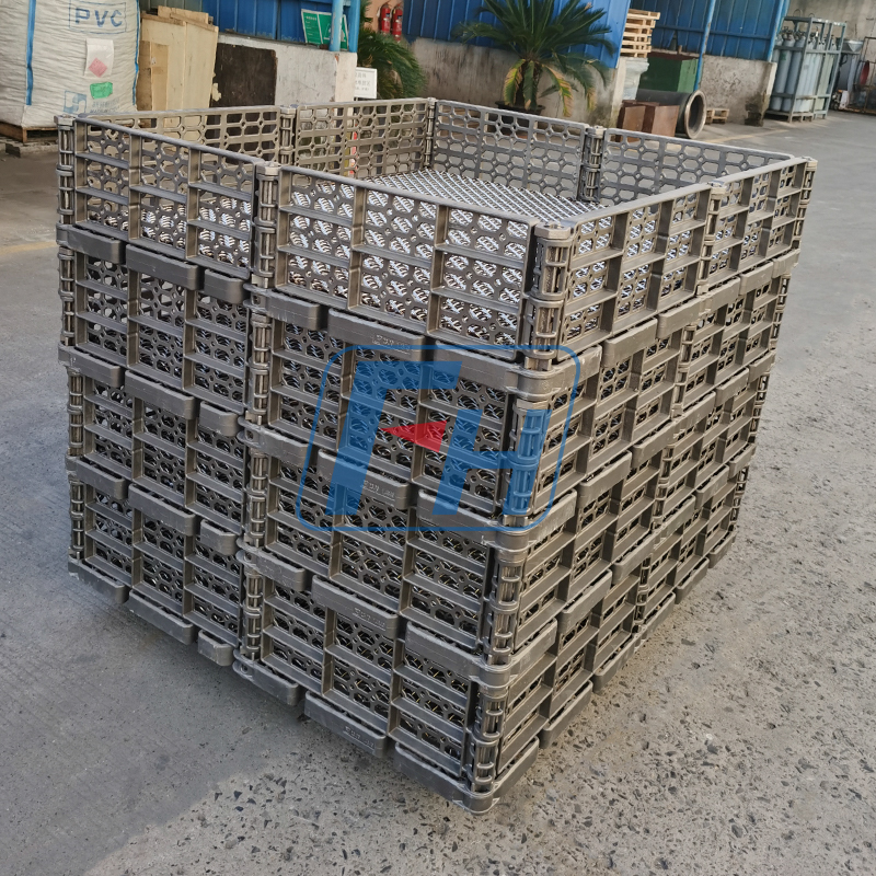 FH-Gusskörbe werden mit größter Sorgfalt hergestellt fortschrittliche Wachsausschmelzguss-Technologie , was eine außergewöhnliche Oberflächenqualität und Ebenheit garantiert. Unsere proprietären hitzebeständigen Legierungen sind maßgeschneidert, um extremen Temperaturen, schnellen Temperaturwechseln und korrosiven Umgebungen standzuhalten.